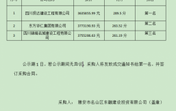 成雅工業園區百丈安置房二期項目鋼筋采購,根據有關法律、法規、規章的規定,于2023年4月21日經雅安市名山區益業商貿有限公司競爭性談判比選流程,評審工作已經結束,成交人已經確定,現將成交結果公示如下:成交單位名稱:四川霞成商貿有限公司成交價:加成價30元/噸進場時間:待甲方通知成交質量要求:合格自成交結果公示之日起一個工作日內,對成交結果無異議的,采購人將簽發成交通知書,并在五個工作日內簽訂合同。雅安市名山區益業商貿有限公司2023年4月23日...