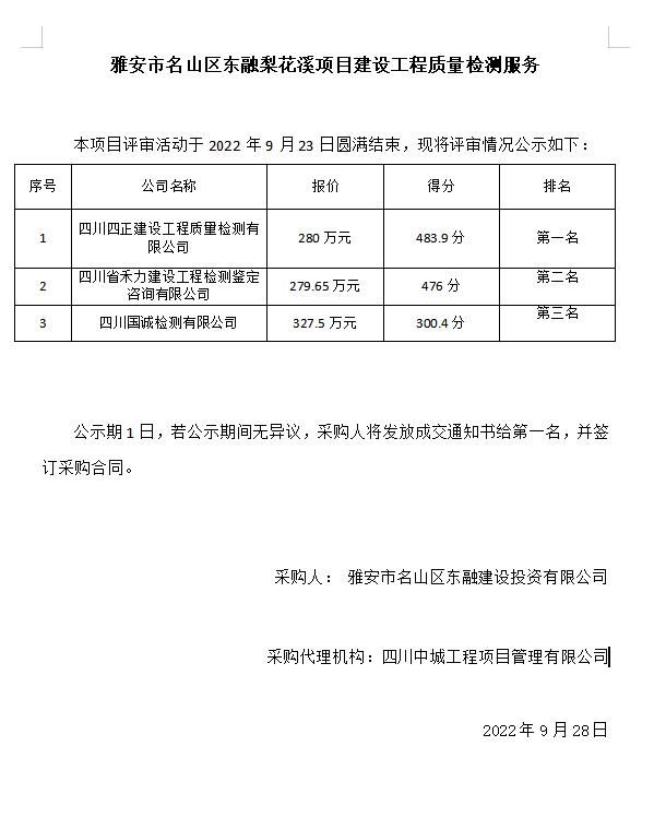 雅安市名山區東融梨花溪項目建設工程質量檢測服務