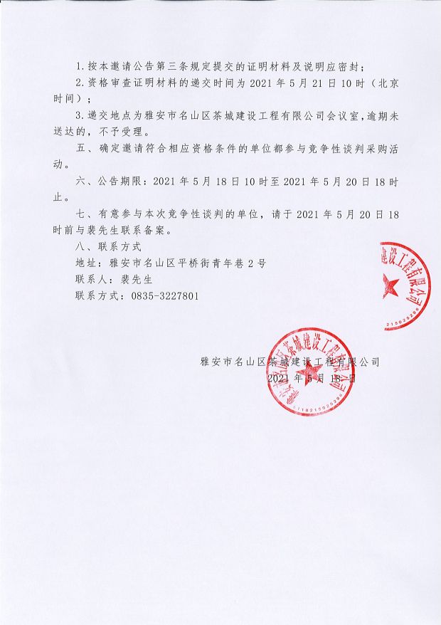 雅安市名山區(qū)茶城建設(shè)工程有限公司 關(guān)于公開招聘高校畢業(yè)生總成績排名及體檢、考察事宜的公告...